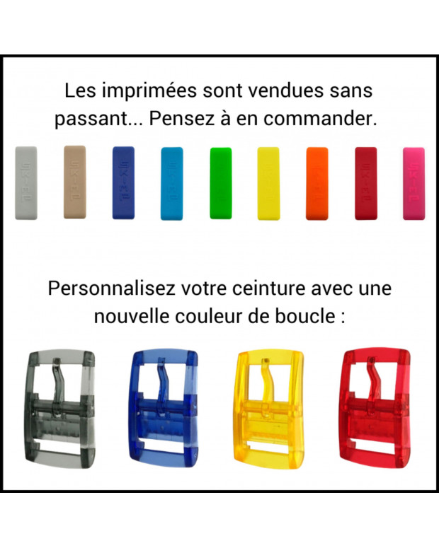 Personnalisez vos ceintures l’Originale, la Sauvage, nos Editions Spéciales et Imprimées selon votre humeur avec des passants & boucles originales et entièrement interchangeables !